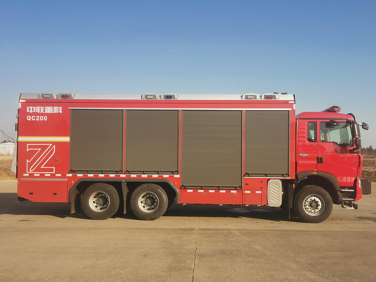 中聯(lián)重科全新一代QC200-6型器材消防車,結合國內(nèi)外消防車的先進理念和消防實戰(zhàn)創(chuàng)新設計而成,具備強大的搶險功能和綜合救援能力,整車結構緊湊,越障能力強,整車操作性、安全性及智能化控制水平處于國內(nèi)先進水平。