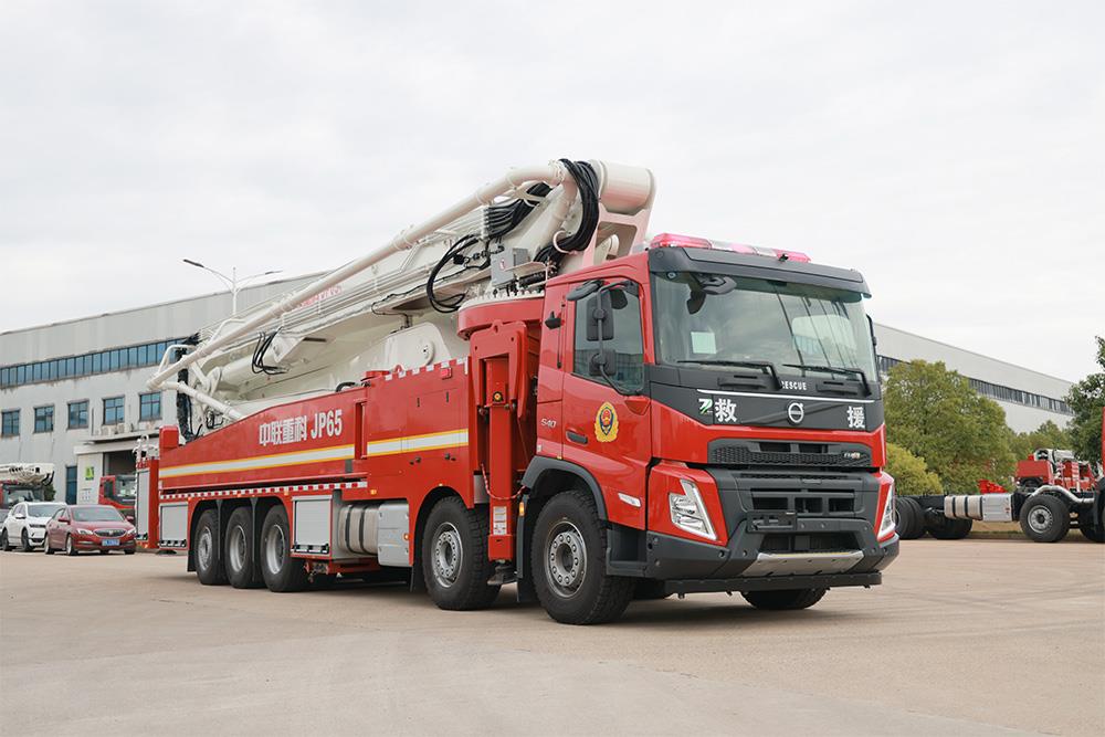中聯(lián)重科65米大跨距舉高噴射消防車,是高層建筑滅火利器,廣泛用于城鎮(zhèn)、工礦企業(yè)高層建筑以及石油、化工、油罐、倉庫等高大建筑物的火災(zāi)撲救。