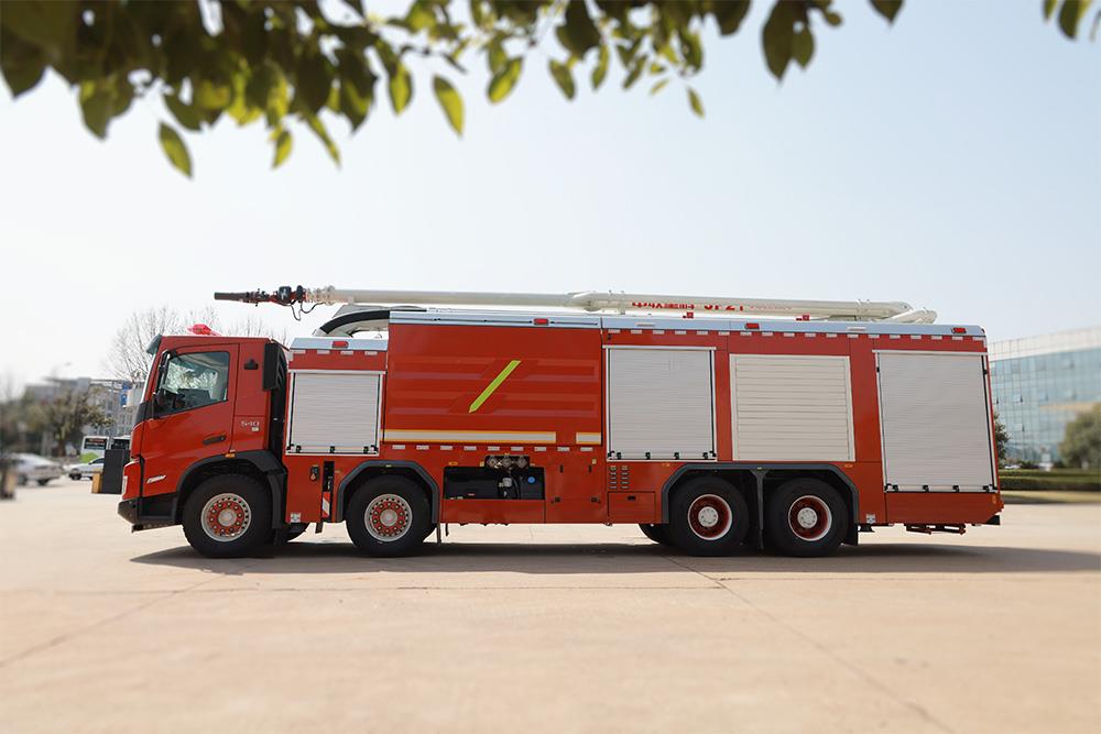 ? ? ? ?車輛選用國際知名品牌沃爾沃 FM540 84R B消防專用底盤,駕駛舒適、動力強(qiáng)勁;該車運(yùn)用了折疊式臂架技術(shù)、正壓式泡沫比例混合、車載式壓縮空氣、氣液比例混合等多種先進(jìn)技術(shù);其中水、泡沫、空氣三者實(shí)時(shí)精準(zhǔn)控制,顯著提高了泡沫的發(fā)泡倍數(shù),提升了滅火效率;可適用于石油化工、煤化工等場所火災(zāi)的撲救。
