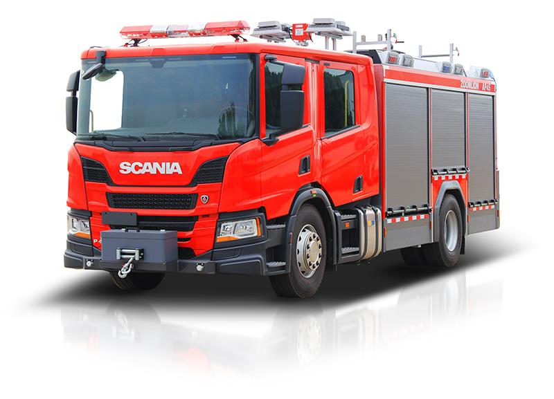 ? ? ZLF5180GXFAP45型城市主戰(zhàn)消防車選用原裝瑞典斯堪尼亞(SCANIA)?5P410 4×2型二類底盤、裝備進口全自動壓縮空氣A類泡沫系統(tǒng)改裝而成。整車外形美觀、設(shè)計科學、匹配合理。