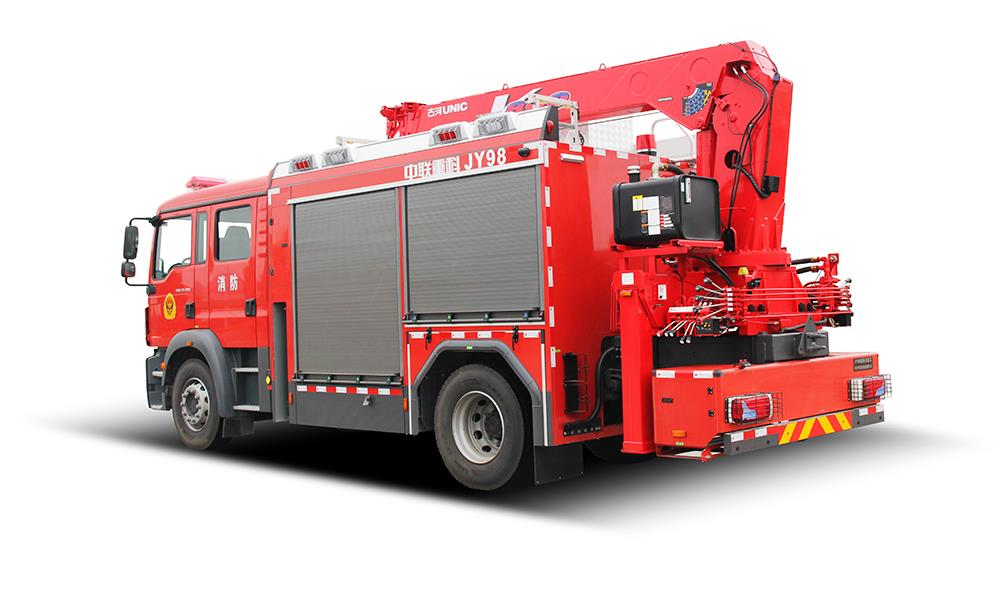 中聯(lián)重科JY98型搶險(xiǎn)救援消防車,結(jié)合國內(nèi)外消防車的先進(jìn)理念和消防實(shí)戰(zhàn)創(chuàng)新設(shè)計(jì)而成,整車結(jié)構(gòu)緊湊,越障能力強(qiáng),可裝備絞盤、升降照明系統(tǒng)、起吊機(jī)、液壓破拆工具組、偵檢器具、救生器具等超過98件搶險(xiǎn)救援器材,是集照明、供電、牽引、起吊、破拆、偵查、救援等功能于一體的多功能消防車,具備強(qiáng)大的搶險(xiǎn)功能和綜合救援能力,是火災(zāi)、地震、抗洪、車禍等各類災(zāi)害搶險(xiǎn)救援的主力車型。