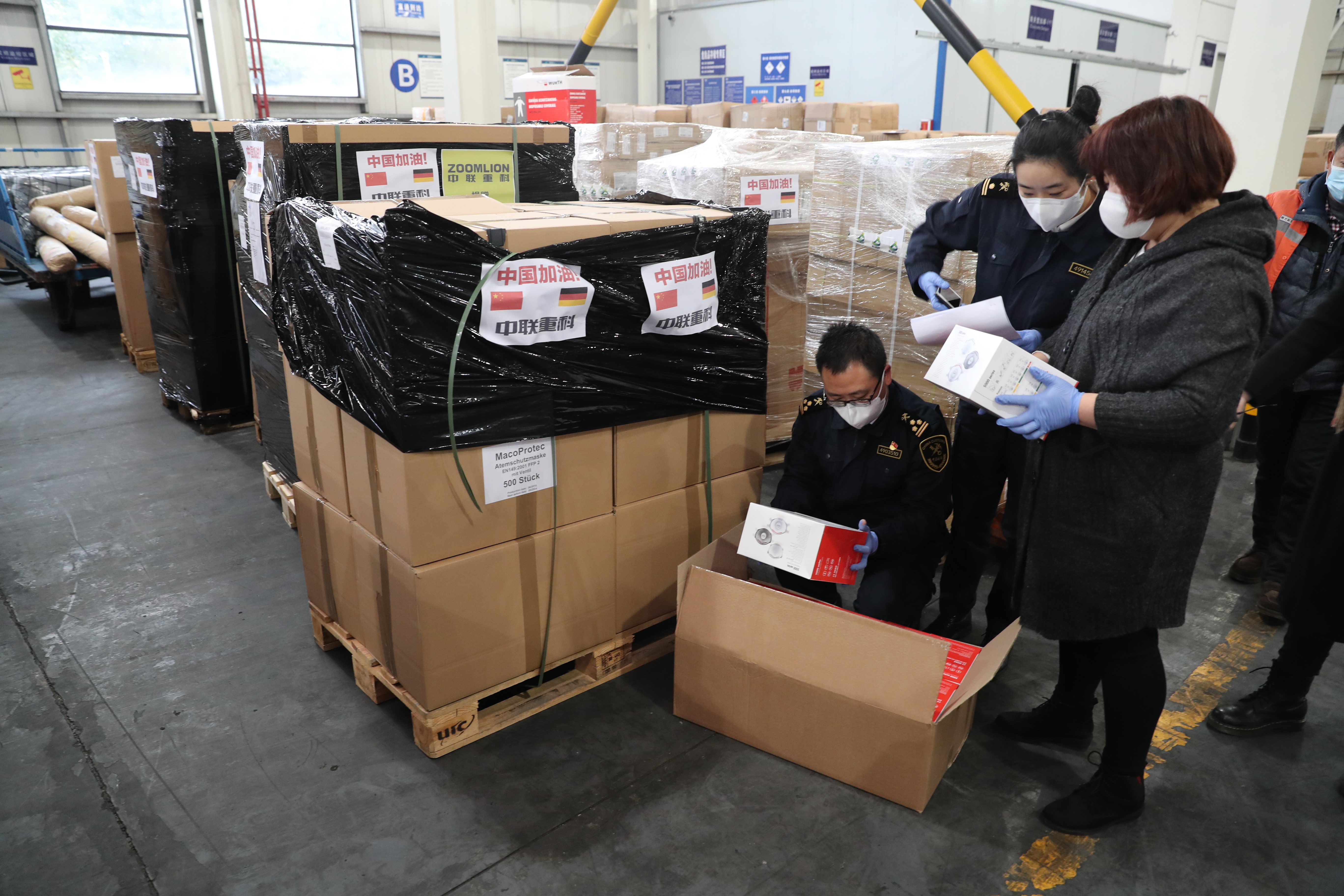 而在前一天的2月7日清晨,逾13萬件醫(yī)療防護物資也從德國法蘭克福機場順利運達長沙黃花機場,這些醫(yī)療防護物資包括口罩、醫(yī)療手套、醫(yī)用護目鏡及醫(yī)用防護服等。