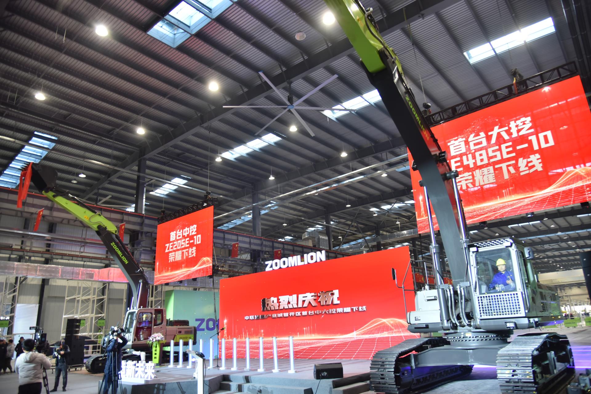 △首臺中大型挖掘機在中聯(lián)智慧產(chǎn)業(yè)城挖掘機械園區(qū)下線
